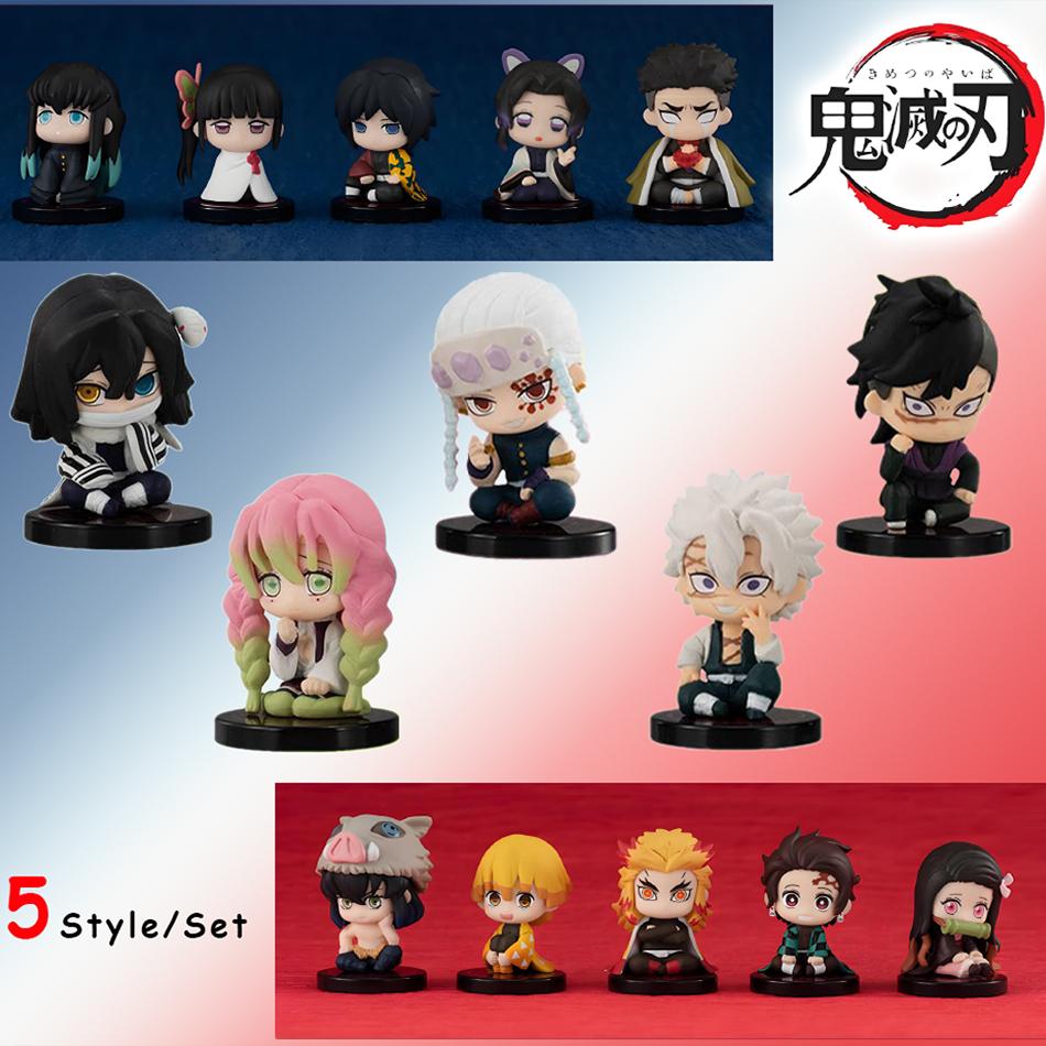 5Pcs/Set Q Version Demon Slayer Sitting Ghost Doll Tanjiro Nidouzi Inosuke Zenizu Figure Action Model Model kid Christmas Presents