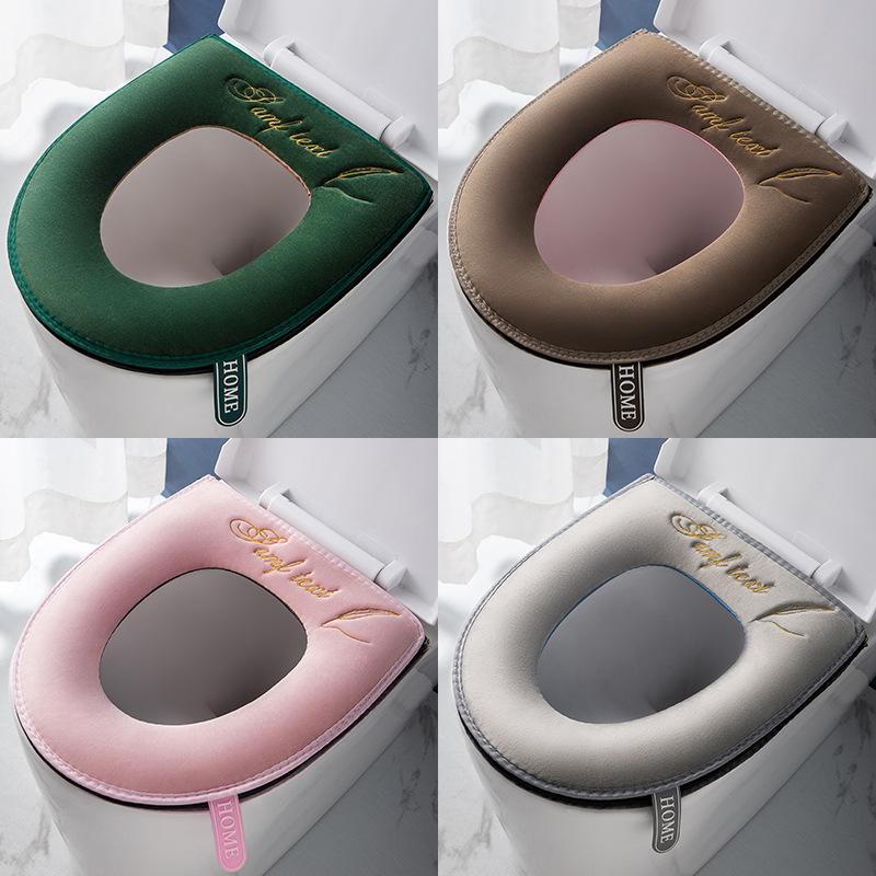 Washable Toilet Seat Cover With Embroidered Pattern