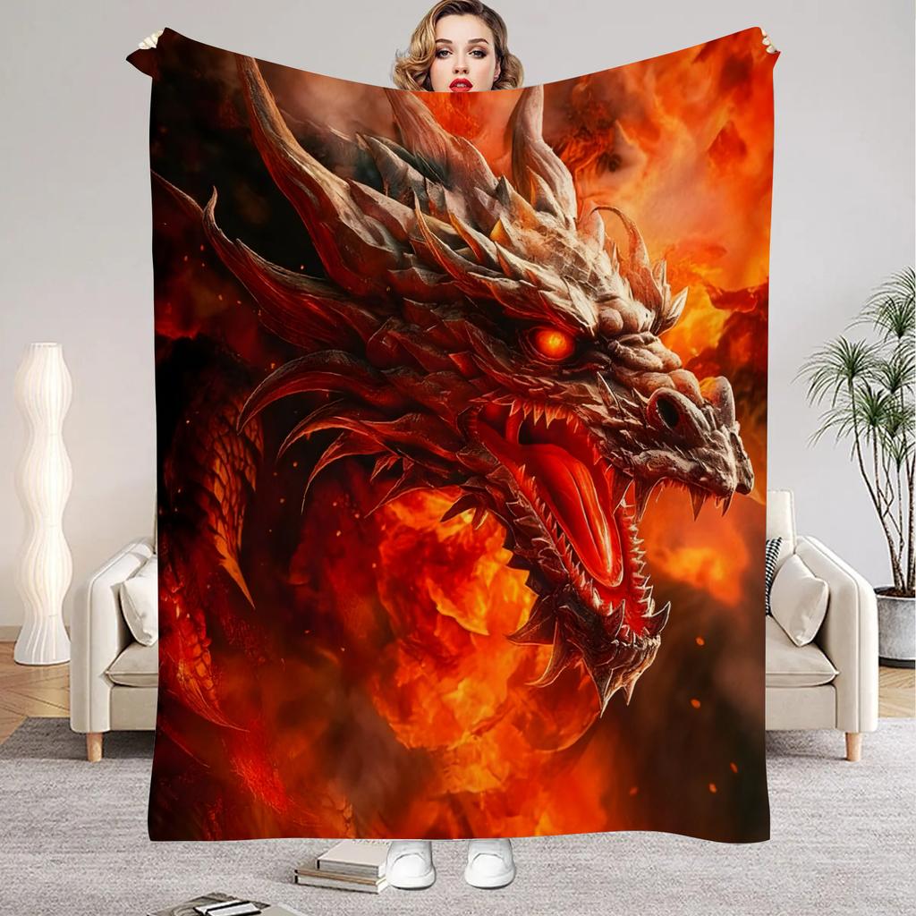 1Pc Digital Printed Fire Dragon King Flannel Blanket Mattress Cover Blanket for Family BedsSofasOfficesOutdoor Camping