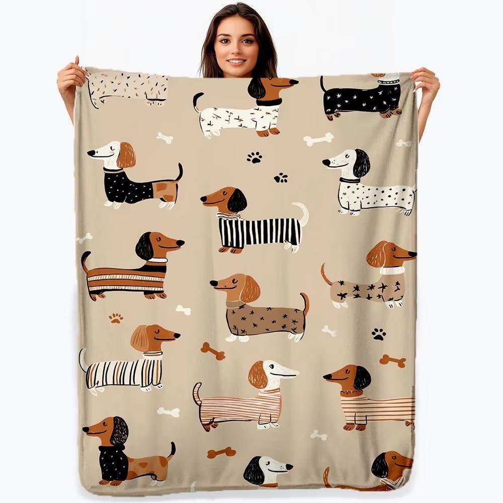 Dachshund Print Flannel Throw Blanket Brown Black White All Seasons Home Travel Comfort Decor