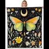 Moth and Moon Fleece Throw Blanket Celestial Butterfly Witchy Lunar Blanket Soft Cozy Starry Sky Throw for Bedroom Sofa
