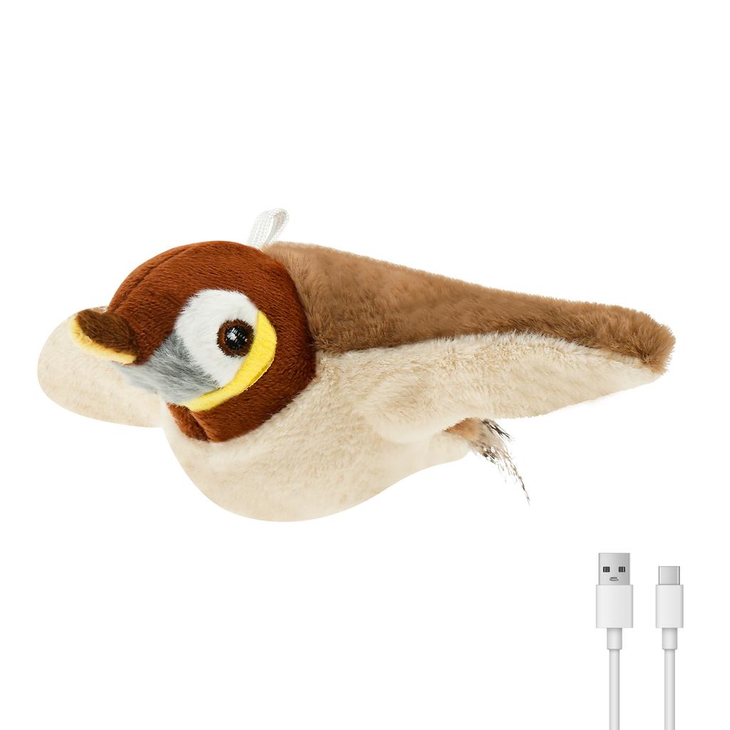 Interactive Cat Toys Bird Electric Flapping Wings Sound Chirping Bird lifelike Rechargeable Pet Cat Activated Plush Toys