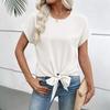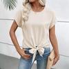 Dámské ležérní a elegantní tričko s krátkým rukávem a mašlí v boho barvě