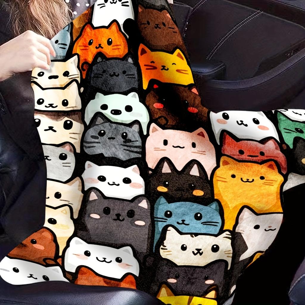 Cute cartoon cat pattern Flannel printed blanket suitable for all seasons suitable for living room office sofa and travel