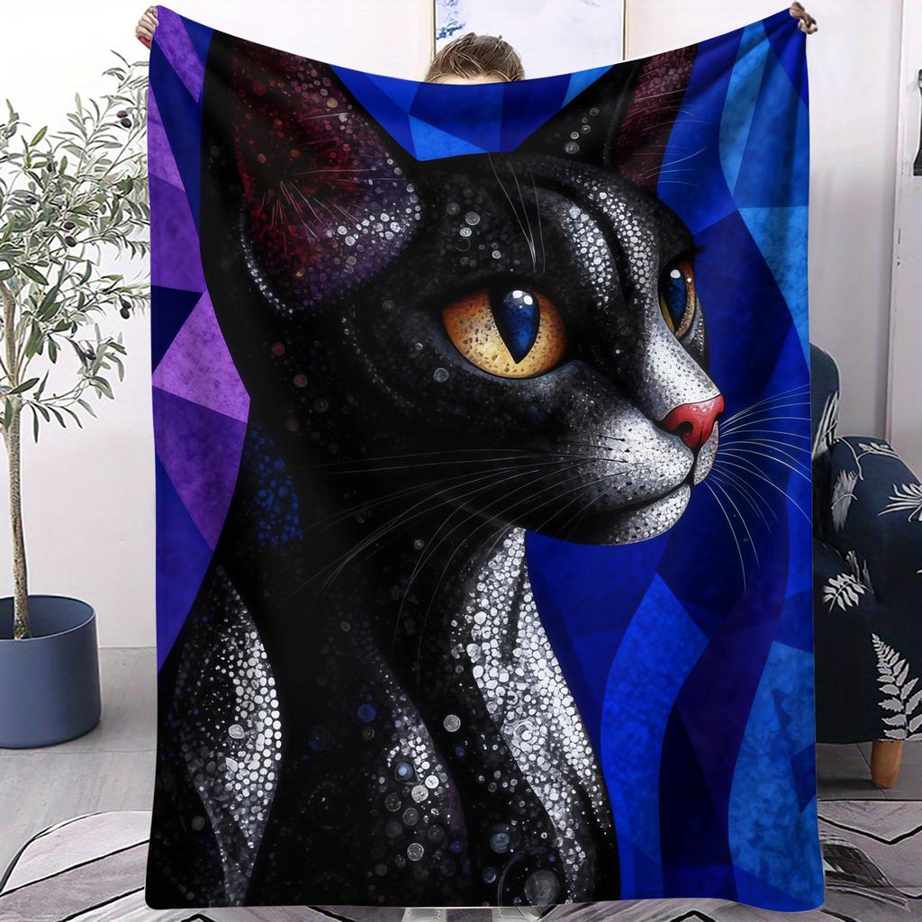 Adorable Cat Artistic Style Pattern Flannel printed blanket suitable for all seasons suitable for living room office sofa travel