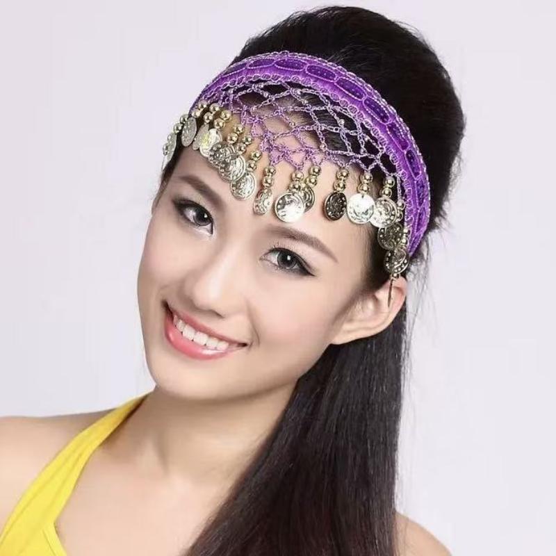 Ethnic Retro Belly Dance Headband With Red Sequin Coin Fringe Personalized Decorative Headpiece For Dance Performances