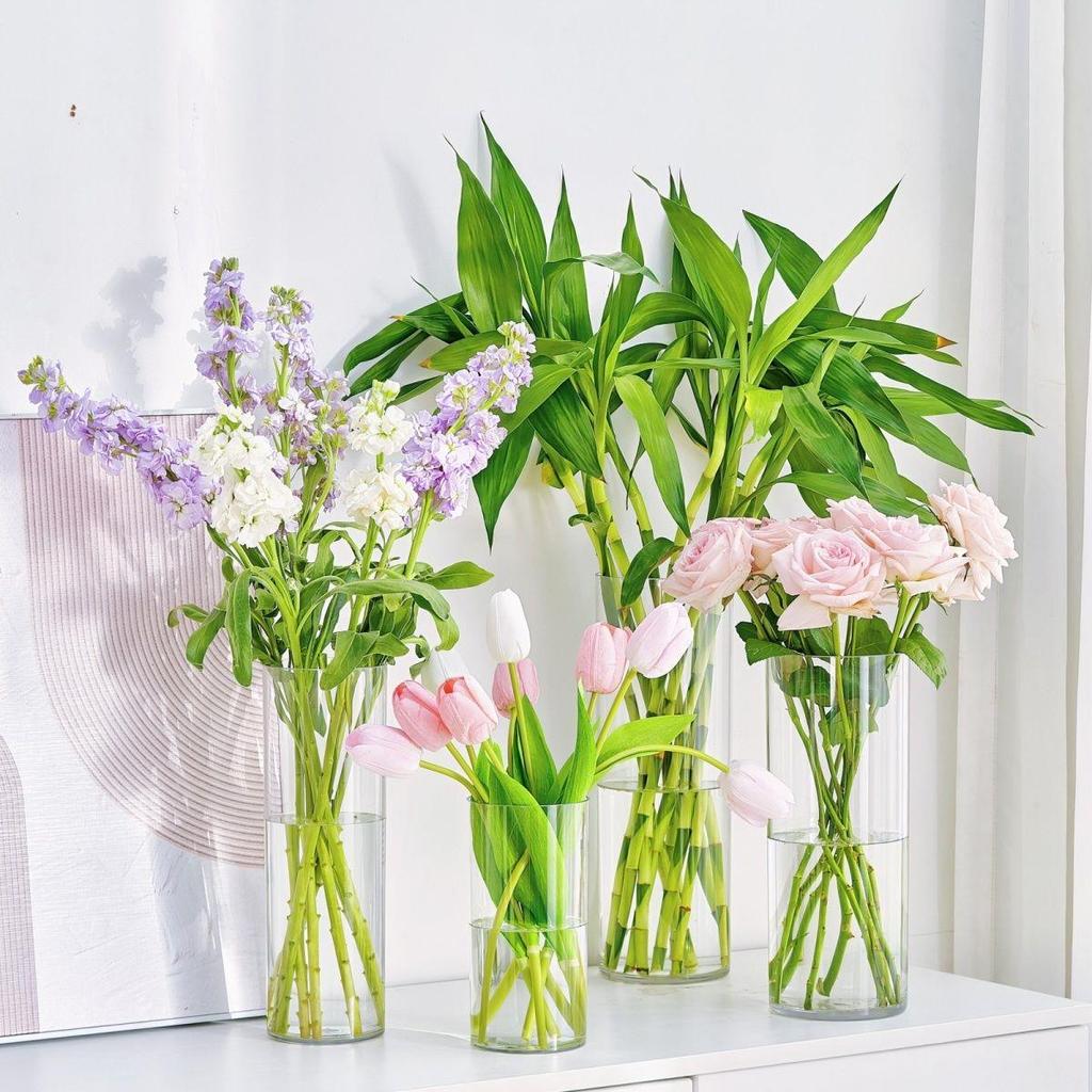 Shatterproof Plastic Vases Clear Hydroponic Decoration Flowerpot Tall Large Cylinder Flower Vase Awakening Flower Bucket