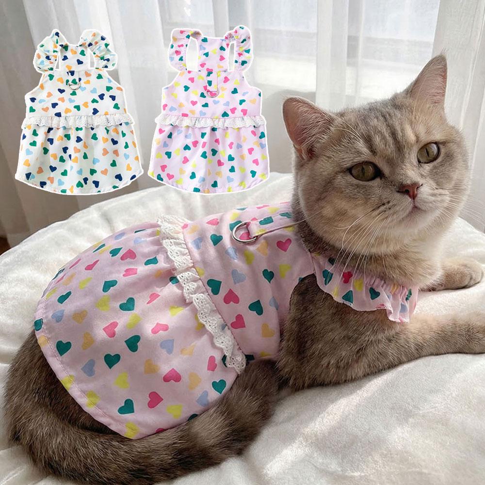 Puppies Princess Dress Summer Heart Printed Dress For Dog Pet Puppy Apparel Cute Print Cat Sweet Skirts Pet Clothes Supplies