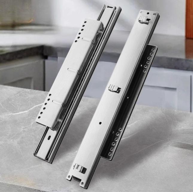 Pull basket track, Kitchen cabinet drawer Buffered slide rail, Bottom and side installation Adjustable width With damping buffer