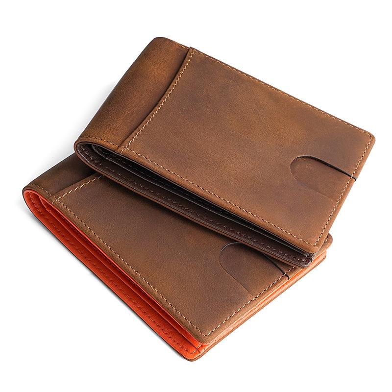 Crazy Horse Skin Men's Wallet Retro Genuine Leather RFID Blocking Multifunctional Anti-theft Brush