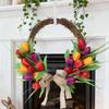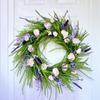 Crafted from high-simulation tulips and green leaves, it offers a lifelike appearance with soft colors that mimic fresh blooms without the need for maintenance. The sturdy rattan ring includes an integrated hanging structure for easy, secure installation without extra hardware. Its simple yet luxurious style suits all seasons, adding warmth and elegance to your home decor year-round.
