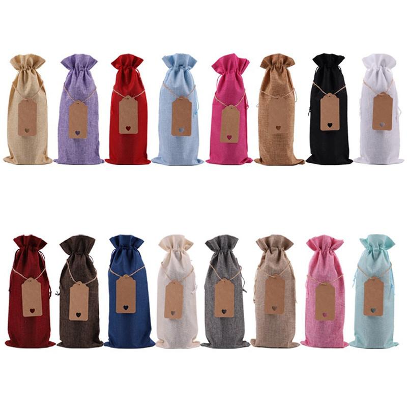 12Pcs Linen Drawstring Wine Bottle Covers With Tags and Linen Rope Dustproof Red Wine Packaging Bag Xmas Christmas Party Decor