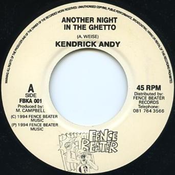 7inch Record KENDRICK ANDY Another Night In The Ghetto FBKA001 Fence Beater 1994 UK Reggae Ska Dub Used