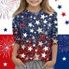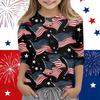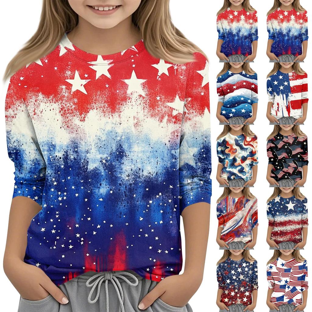 Print Tops For Youth Girls Round Neck 3/4 Sleeves T-Shirts Trendy Tops Outfit Tees Independence Day
