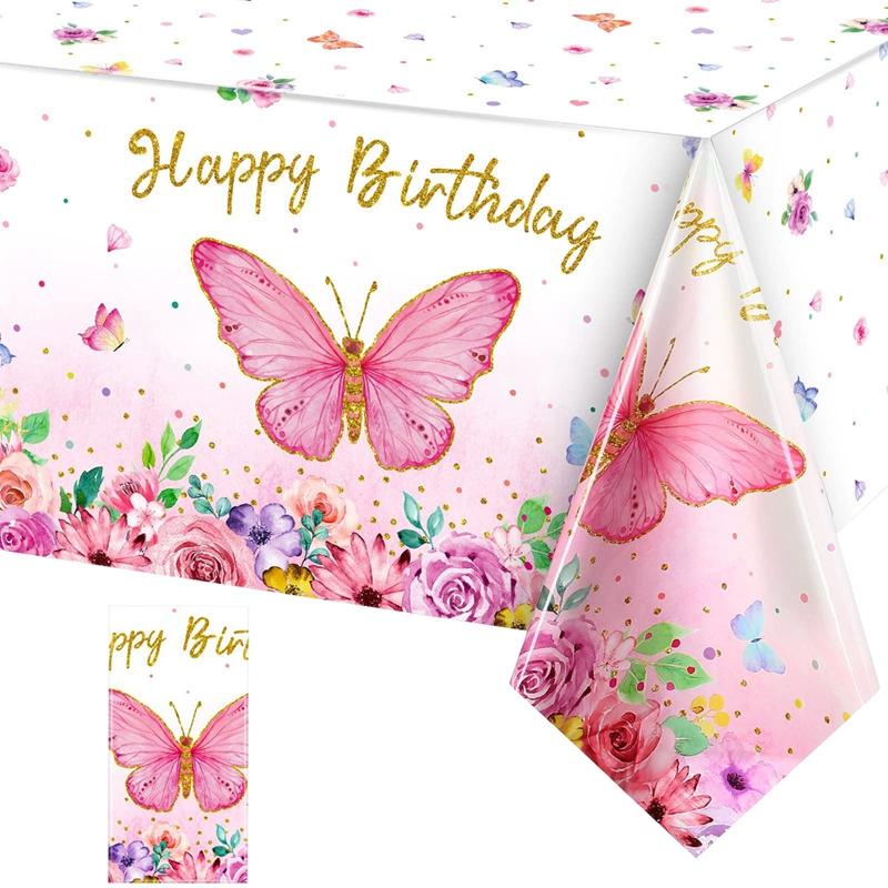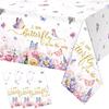 Pink Purple Butterfly Waterproof Tablecloth Spring Butterfly Theme Birthday Party Decoration Girl 1st Birthday Party Baby Shower