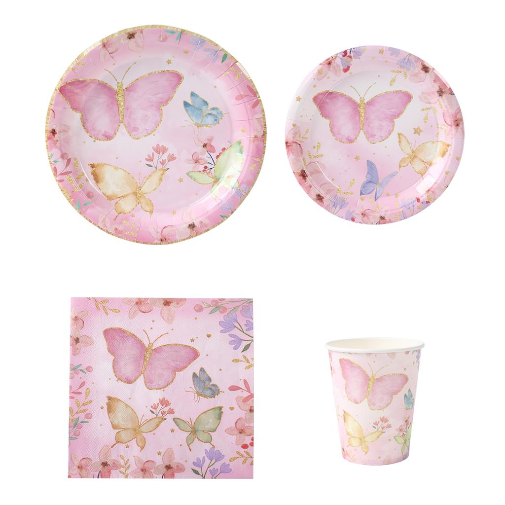 Butterfly Tableware Girls Birthday Party Paper Plates Napkins Cups Decorations Balloons Butterfly Fairy Themed Party Supplies