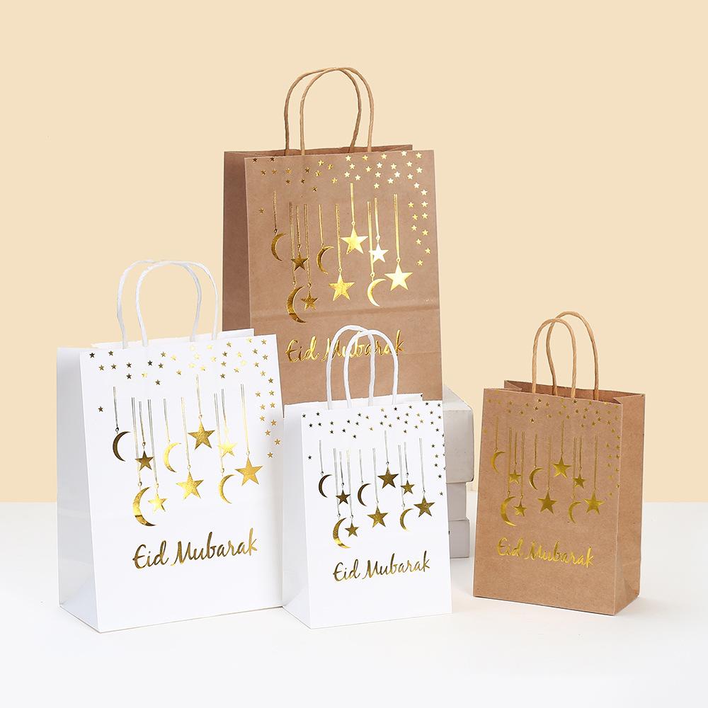 StoBag, 12/30pcs, Eid Mubarak Gold-Foil Paper Gift Bags with Handles, Elegant Reusable for Special Occasions, Packing presents