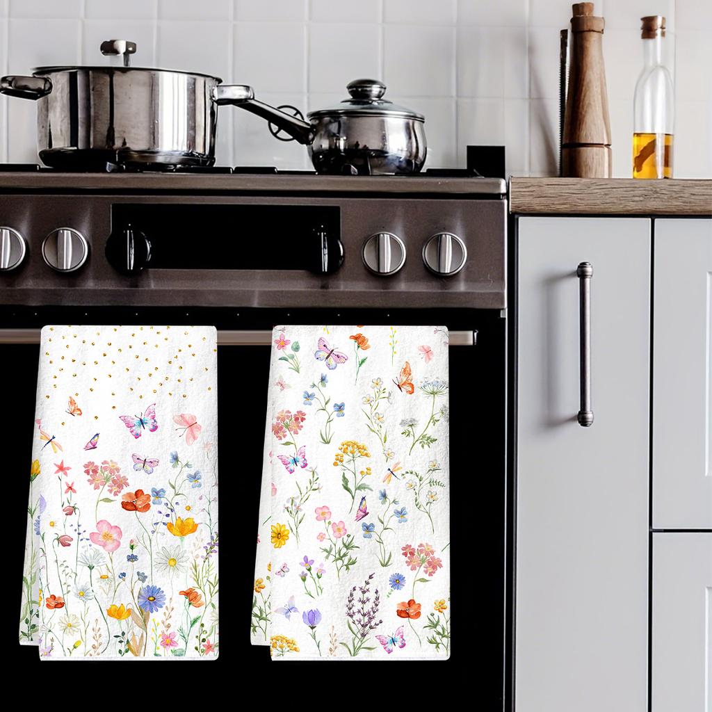 2pcs Wildflowers Lavender Kitchen Towels Spring Summer Floral Hand Towels Flowers Home Dish Towels for Kitchen Bathroom Decor