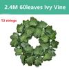 6/12Pcs 2.4M Artificial Plants Vine Fake Leaf Garland Hanging Wall Ornament Leaves Vine for Home Decor Garden Wedding Decoration