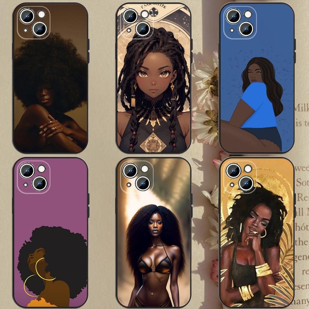 Afro Girls Art Phone Case Phone Case For Apple iPhone 15,14,13,12,11,XS,XR,X,8,7,Pro,Max,Plus,mini Silicone Black Cover