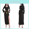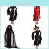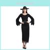The Adams Family Morticia Halloween cosplay costume for women features a polyester dress designed for stage performances and themed events. Crafted from polyester fiber, The costumes sleek black design captures a gothic, European fantasy style, suitable for costume parties or theatrical shows. Users will appreciate the durable fabric that resists wrinkles and maintains its shape. To keep the costume looking its best, wipe it clean with a damp cloth after use.