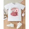 European sizes Pink Cartoon Playing Card and Dice Pattern T-shirt, Round Neck Short-sleeved Summer Top, Girls' T-shirt