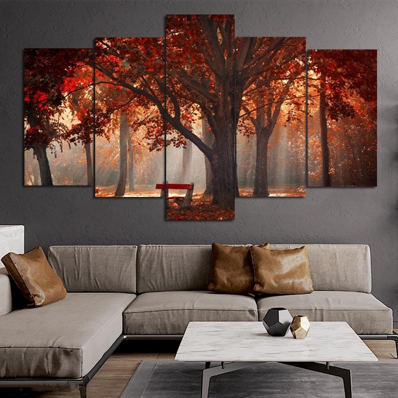 SELFLESSLY 5 Panels/Set Red Tree Autumn Landscape Pictures Canvas Painting Wall Art For Living Room Posters Scenery Home Decor