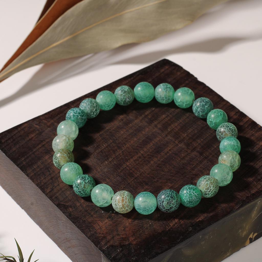 Festive Gifts Green Cracked Agate Beaded Bracelet Natural Texture Fashion Jewelry For Men Women Daily Wear Gift