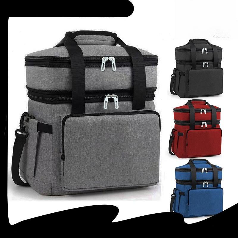 Large Capacity Double Layer Aluminum Foil Insulated Bag Oxford Cloth Car Ice Bag Outdoor Picnic Crossbody Portable Keeping Bag