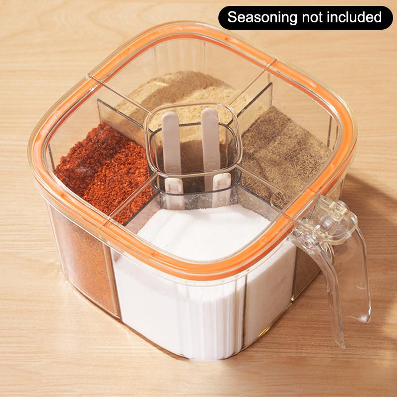 4 Grids Salt Pepper Seasoning Box Transparent Lid Spice Jar Chili Powder Sugar Bowl Condiments Storage Container Kitchen Gadgets