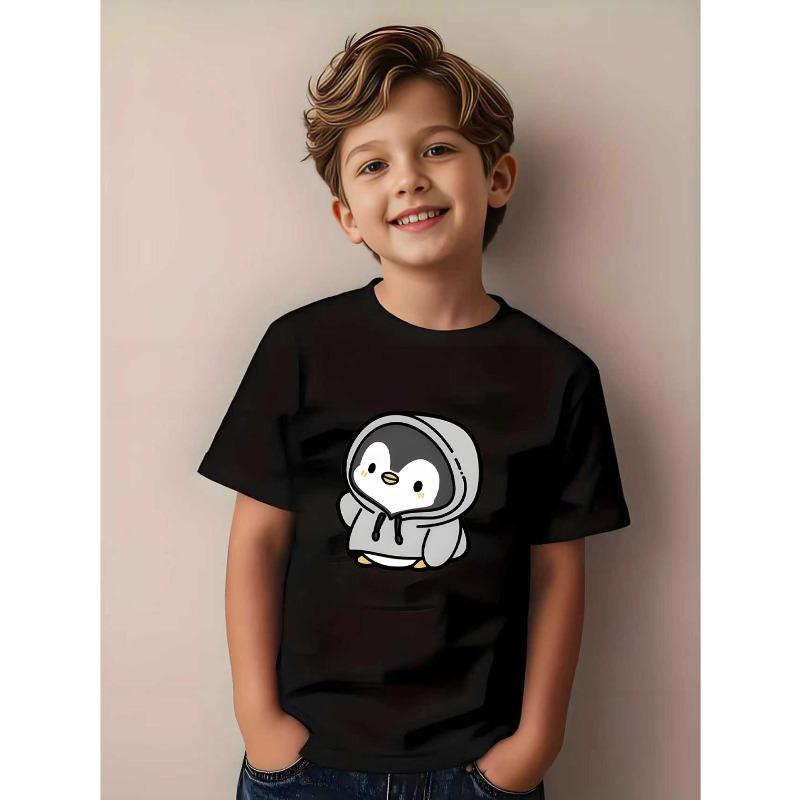 European sizes Boys' Penguin Print Short Sleeve Shirt - Cute Penguin & Penguin! Print Summer Round Neck Tee, Soft Breathable Casual Top