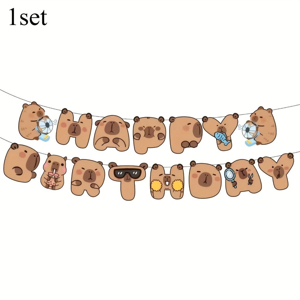 1pc Capybara Happy Birthday Flag Decorations Cute Animal Themed Party Supplies Baby Shower Wall Hanging Garland Backdrop Decor