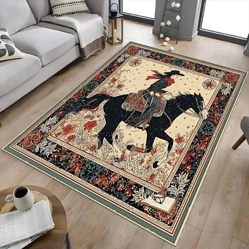 1PC Cowgirl Horse Non-Slip Floor carpet, Office, family, bedroom, Studio - Large Area Rug, Vibrant Colors-C0455