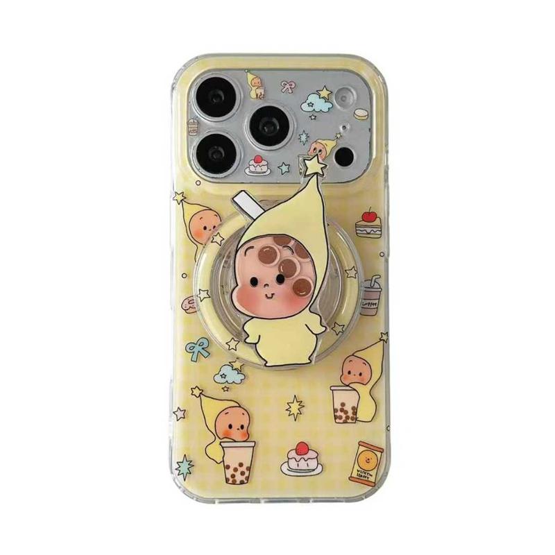 Kawaii Cartoon Star Baby Magnetic Phone Case For iPhone 17 Pro 15 14 16 Pro Max Cover with Shaking Stand For Magsafe Case