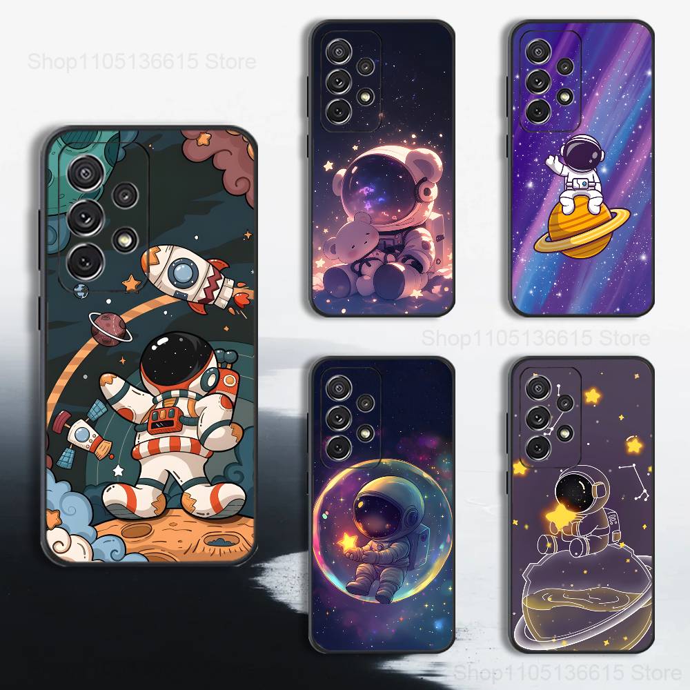 Cartoon Astronaut Space Case For Samsung S22,S25,S20,S10,Plus,Ultra,S24,S23,FE,S21,S9,Lite,Soft Silicone Black