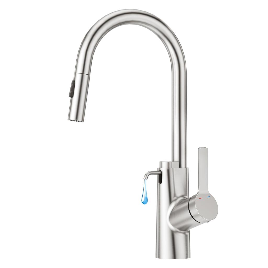 Faustina Kitchen Kitchen Mixer Tap with 3 Water Flow Detergent Stainless Steel Kitchen Faucet, Modes, Pull-Out Hose, Built-in Push-Type Dispenser,