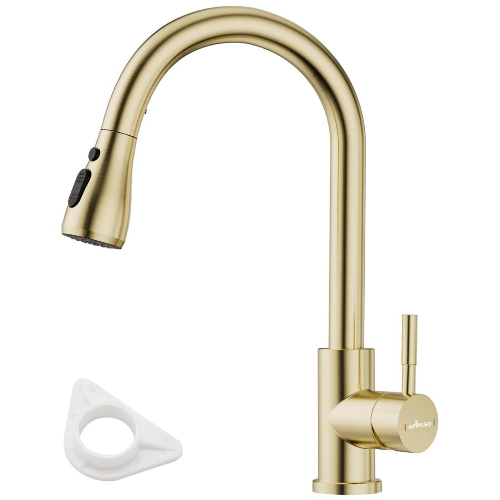 APPASO Modern Kitchen Mixer Tap with Single SUS304 Stainless for Kitchen Includes Japanese Instruction Manual Pull-Out Spray, Lever, Steel, Sinks,