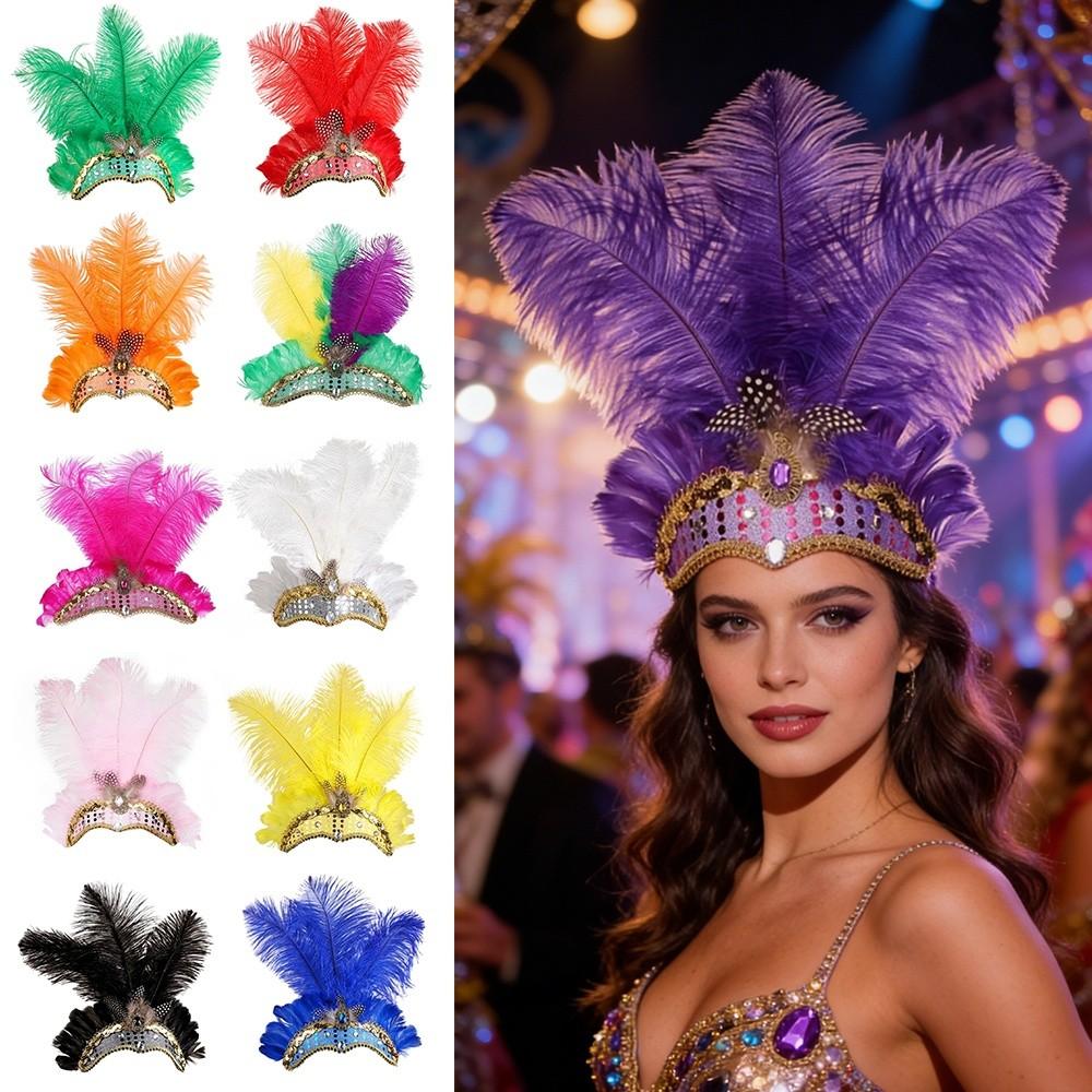 Colorful Feather Headpiece Brazilian Carnival Stage Performance Feather Headdress Decorative Hair Accessories
