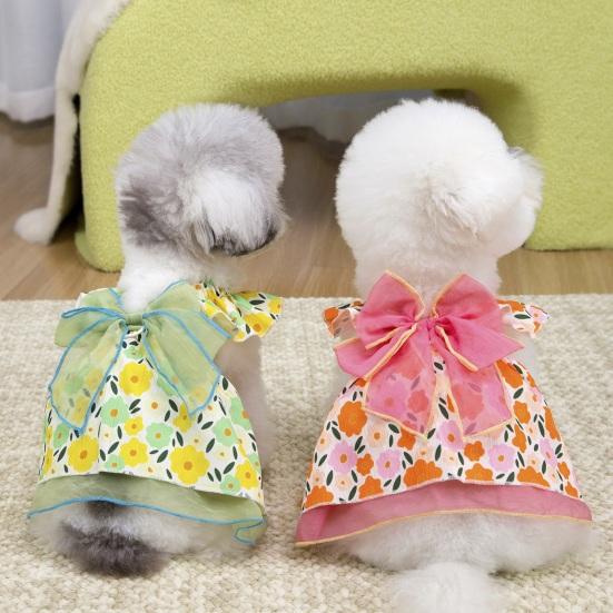 This adorable pet dress features a ruffled flying sleeve design, adding sophistication and charming details to your pet’s wardrobe. Adorned with fresh floral prints, it captures the vibrant spirit of spring and summer, perfect for photo sessions.