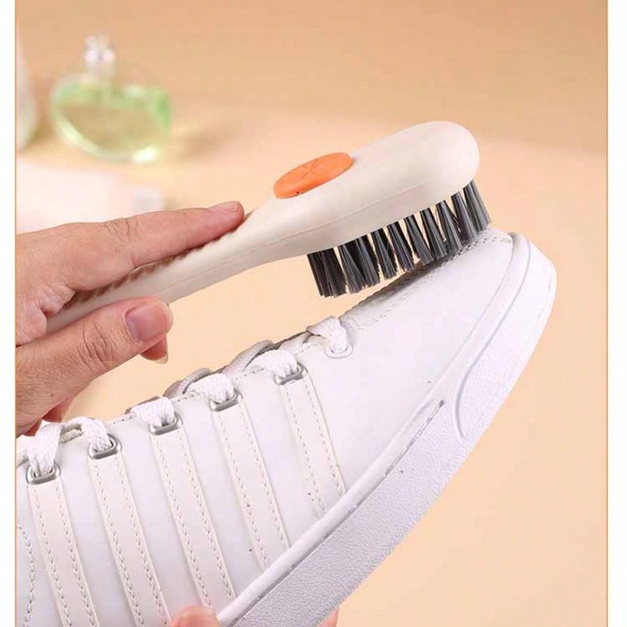 1pc Easy-To-Use White PP Multi-Functional Shoe Brush - Press-Type Built-In Liquid Dispenser, Soft Non-Destructive Bristles.