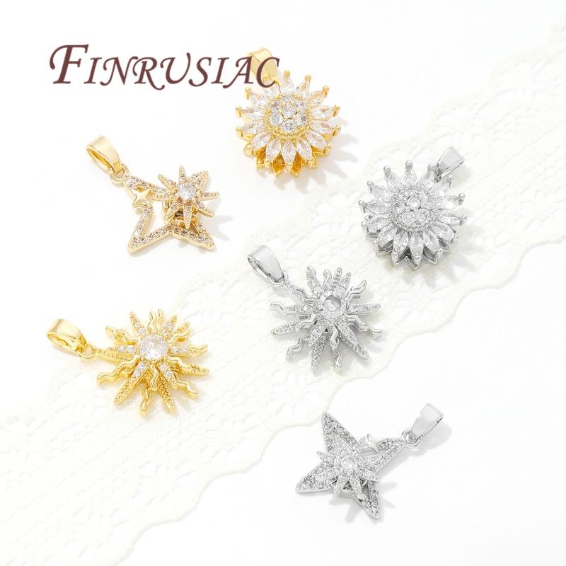 Fashion Crystal Zircon Charms For Necklace 18K Gold Plated Star/Flowers Pendants Accessories DIY Jewelry Making Supplies