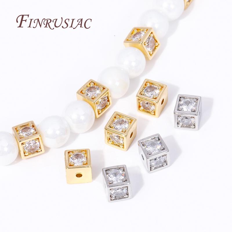 Luxury 18K Gold Plated Inlay Zircon Square Spacer Separator Beads High Quality Jewelry Making DIY Bracelets Necklace Accessories