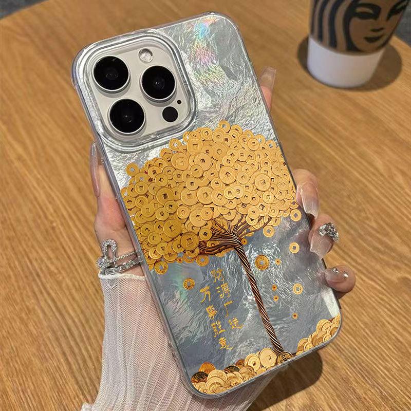 Enhance your iPhone's elegance and protection with this luxurious phone case, adorned with a mesmerizing gold coin money tree design. Specifically crafted for iPhone models 13, 14 Pro Max, 16 Pro, and 17, this case offers a perfect blend of style and functionality. Thanks to its shockproof features, it provides superior protection against accidental drops and everyday impacts, ensuring your device remains safe and stylish.