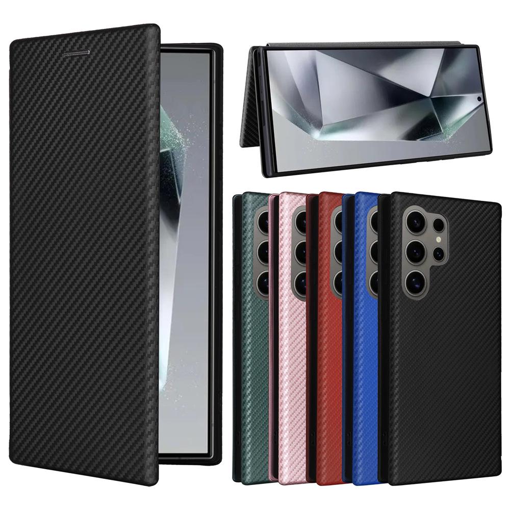 Samsung S24 Ultra Carbon Fiber Flip Leather Phone Case.