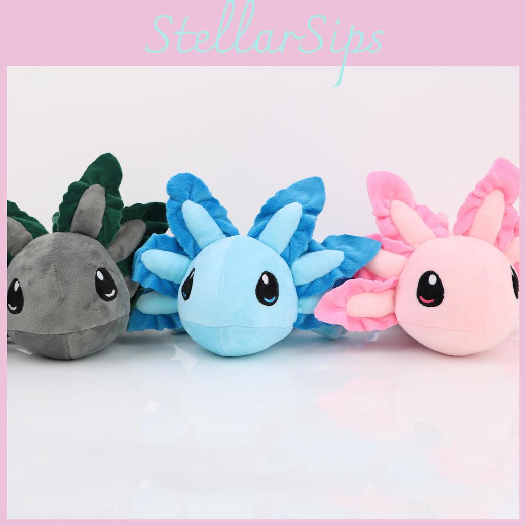 This plush axolotl dinosaur toy features a soft, crystal-like fabric and is crafted from high-quality PP cotton filling. Available in pink, blue, and gray. Ideal for children's bedroom decor, playtime, or as a gift. Wipe clean with a damp cloth for maintenance.