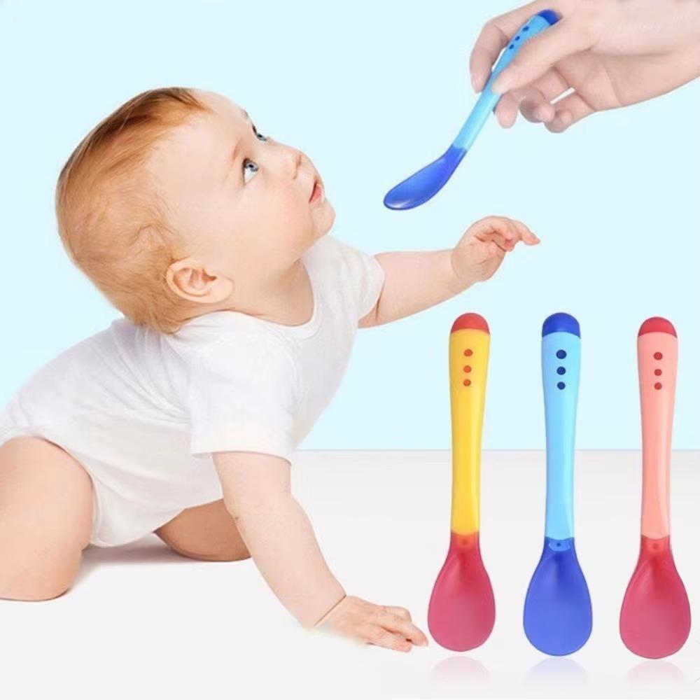 Baby Temperature Change Fork Spoon Small Toddlers Utensils Plastic Baby Spoons Infant Feeding Tool Heat Sensitive Kids Tableware