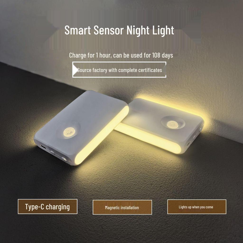 Wireless Magnetic LED Night Light with Human Infrared Sensor & Type-C Charging for Home Use