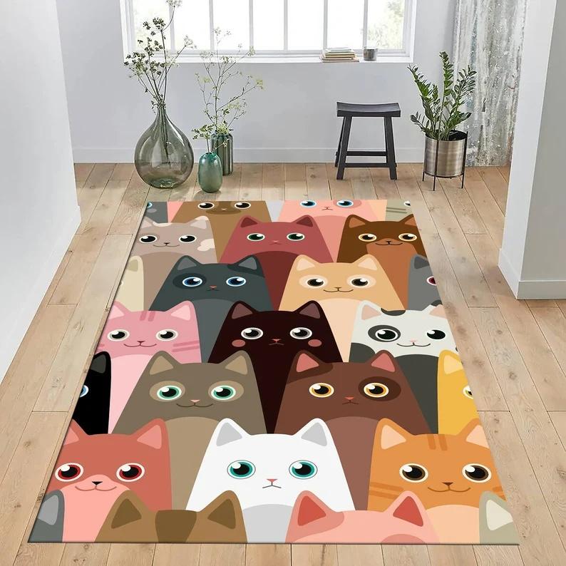 Full Cartoon Cat Carpet Creative Stacking Cat Pattern Rug Living Room Bedroom Cute Home Decoration Entrance Large Anti Slip Mat