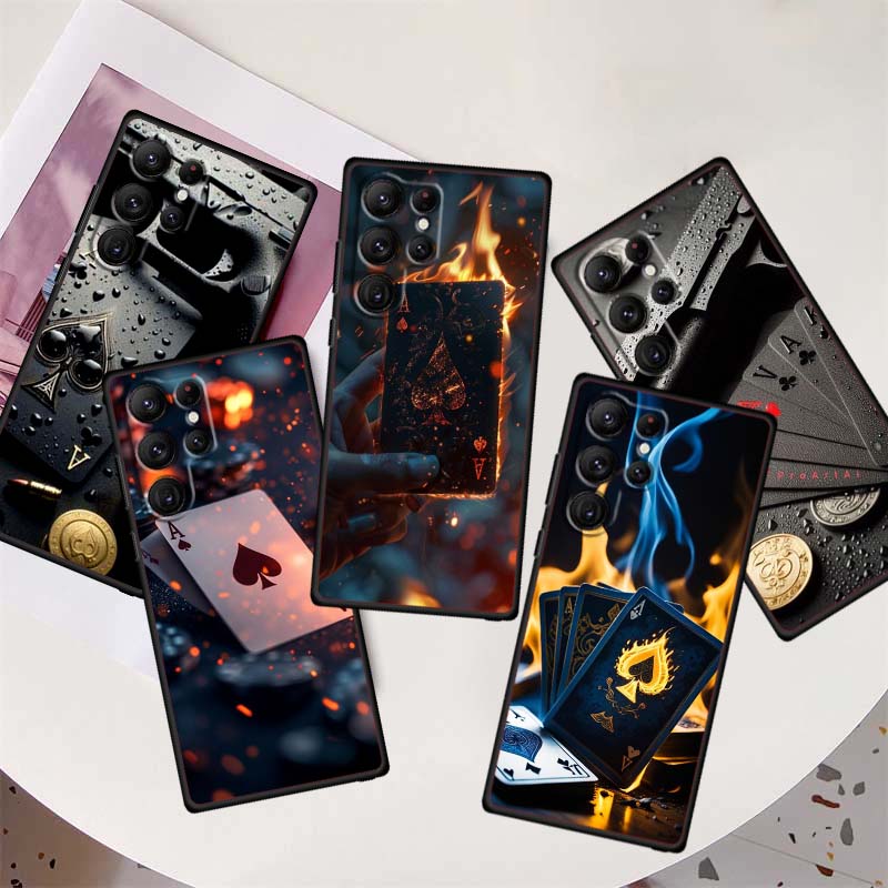 Creative poker card patterns Phone Case For Samsung Galaxy S26 S25 S24 S23 S22 S21 S20 Ultra Plus FE 5G Black Soft TPU