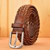 Meimeier Handmade woven leather belt - men's genuine top grain cowhide casual retro pin buckle belt